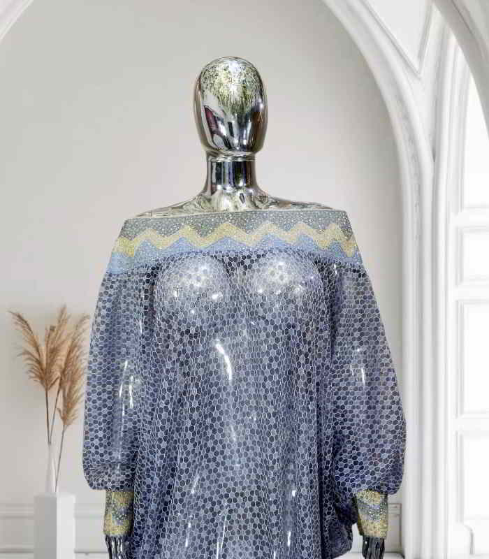 Explore the luxurious HODAN Collection, featuring quality lace fabric and exquisite embroidery details. Each piece, including the off-shoulder boubou kaftan, is adorned with stones for a touch of sophistication. Unlined and designed for the discerning individual, these garments require delicate care and should not be washed in a machine.