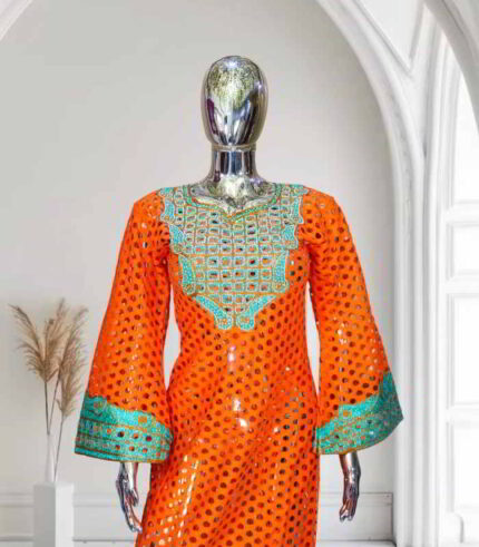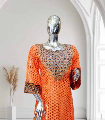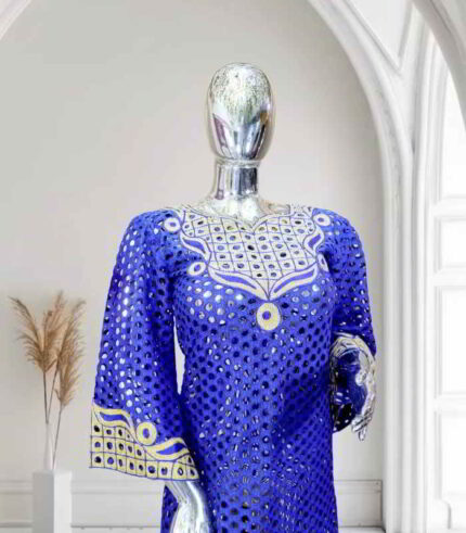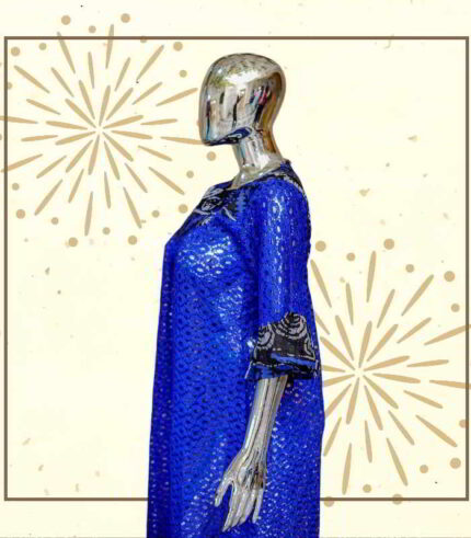 Original price was: US$120.00.US$60.00Current price is: US$60.00.Ibukun Collection: Majestic Mosaic Boubou Kaftan Intricate Embroidery and Sparkling Stones