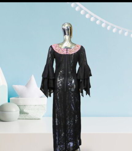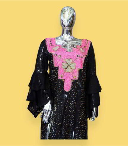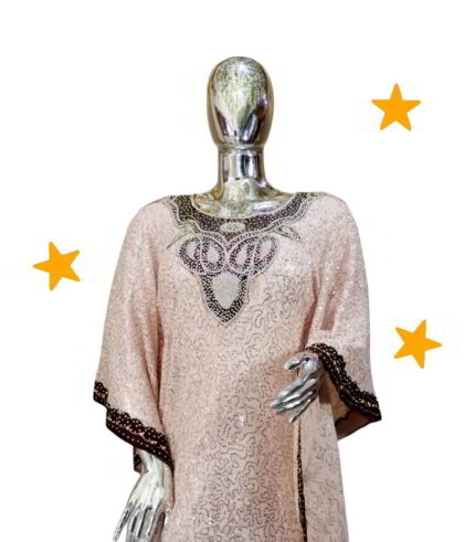 Original price was: US$115.00.US$45.00Current price is: US$45.00.Oreofe Collection: Boubou Kaftan with Pink Star Shape Embroidery