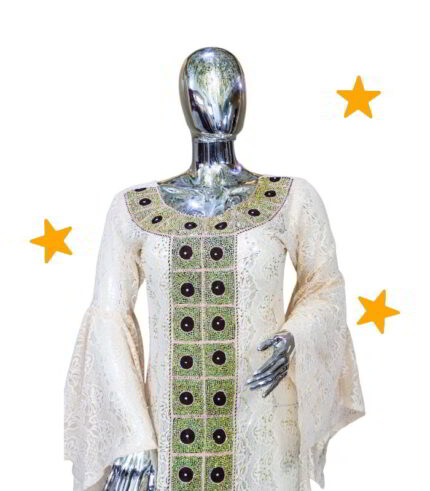 Original price was: US$130.00.US$60.00Current price is: US$60.00.Omooba Collection: Ivory Illumination Kaftan – Handcrafted Embroidery and Shiny Stones