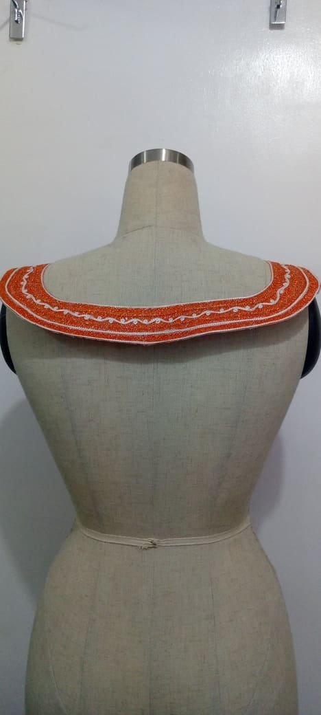 Orange and White Embroidered Neck