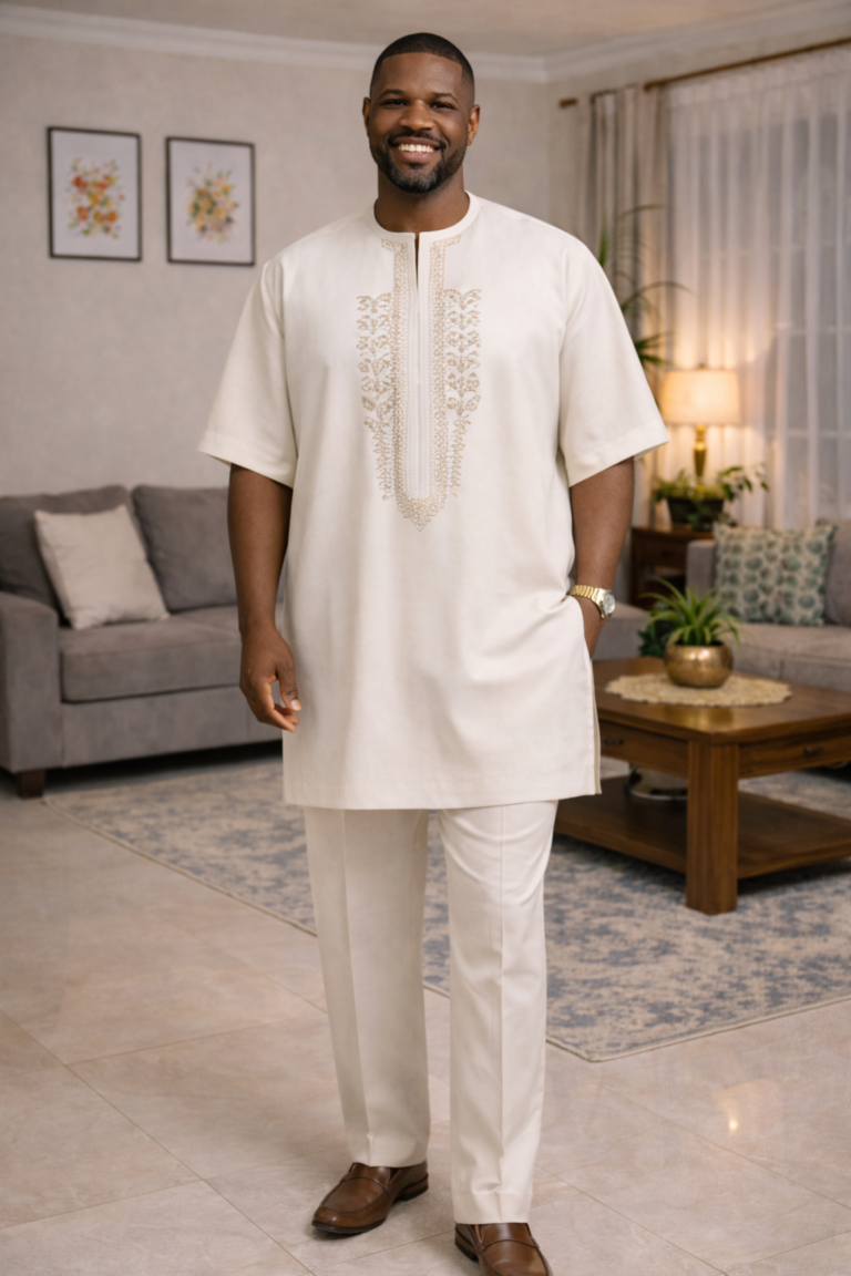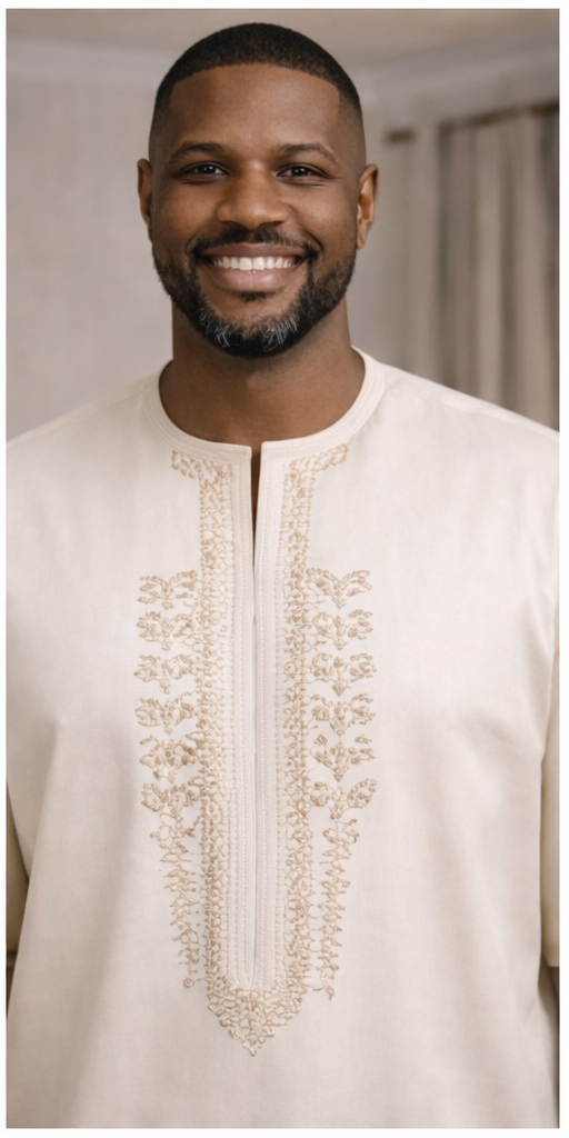 Bring refined elegance to your wardrobe with this light-toned kaftan, beautifully accented by intricate yellow embroidery running vertically down the front. Designed with short sleeves and a tailored chest pocket, the piece combines cultural craftsmanship with modern simplicity. Its lightweight fabric and clean silhouette make it versatile for festive occasions, formal gatherings, or everyday sophistication. The subtle yet striking embroidery detail adds a touch of artistry, ensuring you stand out with understated charm.