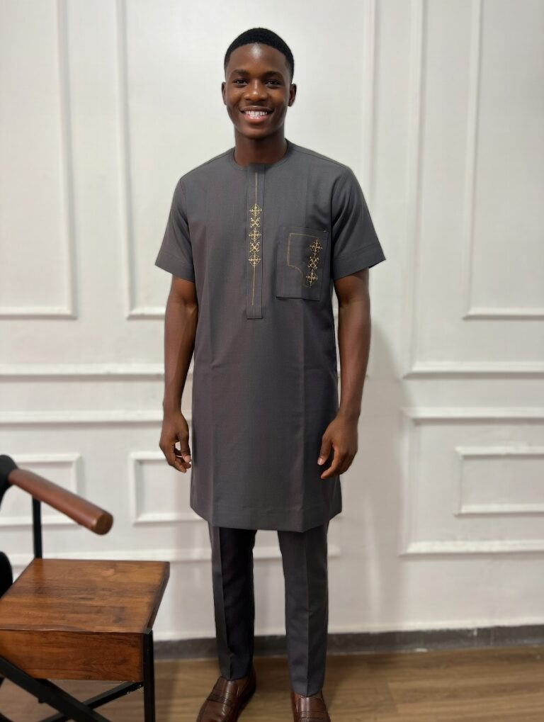 Gray Kaftan with Yellow Embroidery