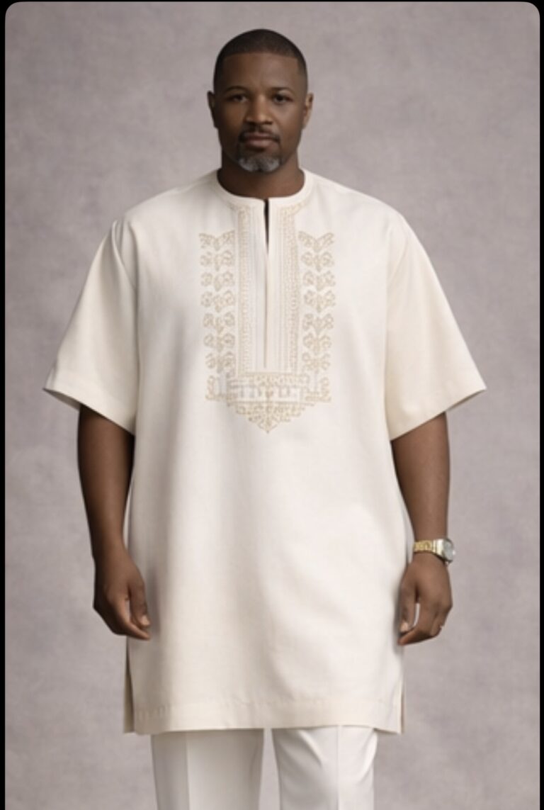 Bring refined elegance to your wardrobe with this light-toned kaftan, beautifully accented by intricate yellow embroidery running vertically down the front. Designed with short sleeves and a tailored chest pocket, the piece combines cultural craftsmanship with modern simplicity. Its lightweight fabric and clean silhouette make it versatile for festive occasions, formal gatherings, or everyday sophistication. The subtle yet striking embroidery detail adds a touch of artistry, ensuring you stand out with understated charm.