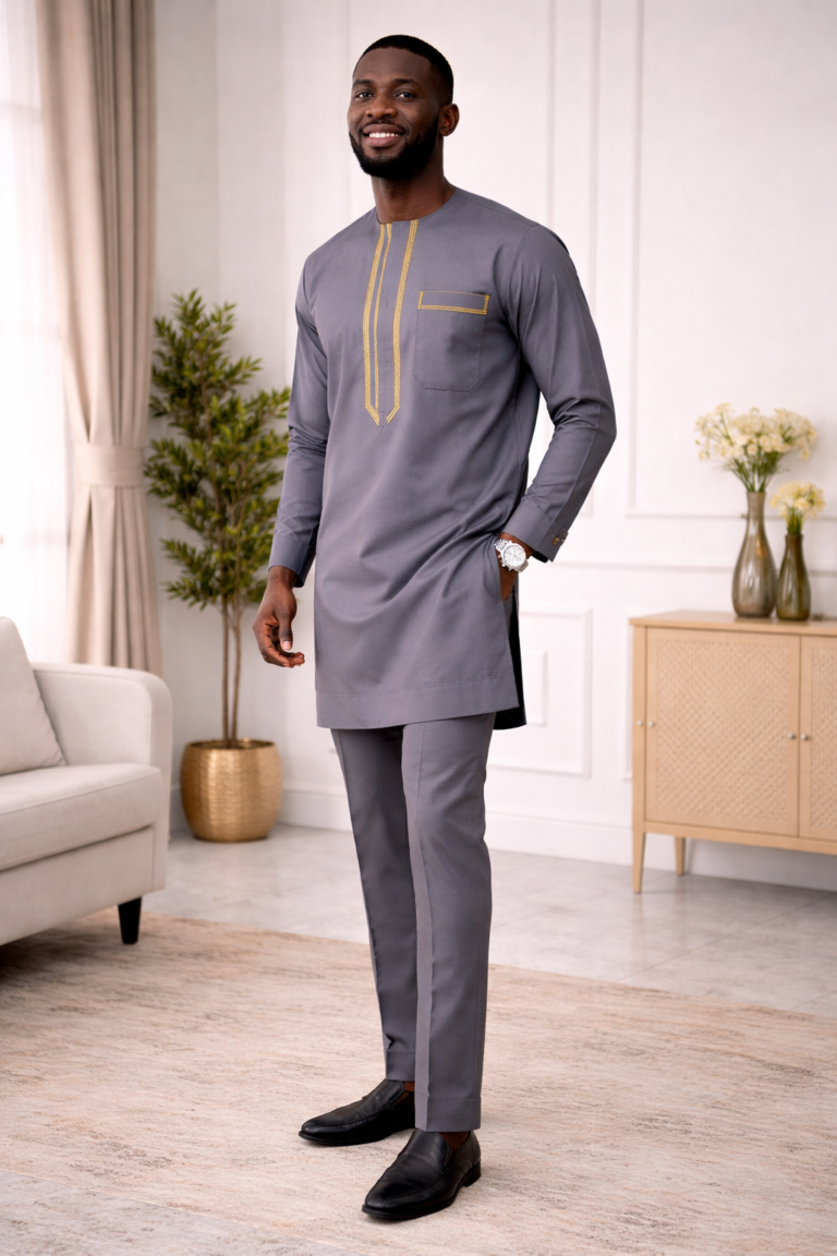 Gray Kaftan with Yellow Embroidery