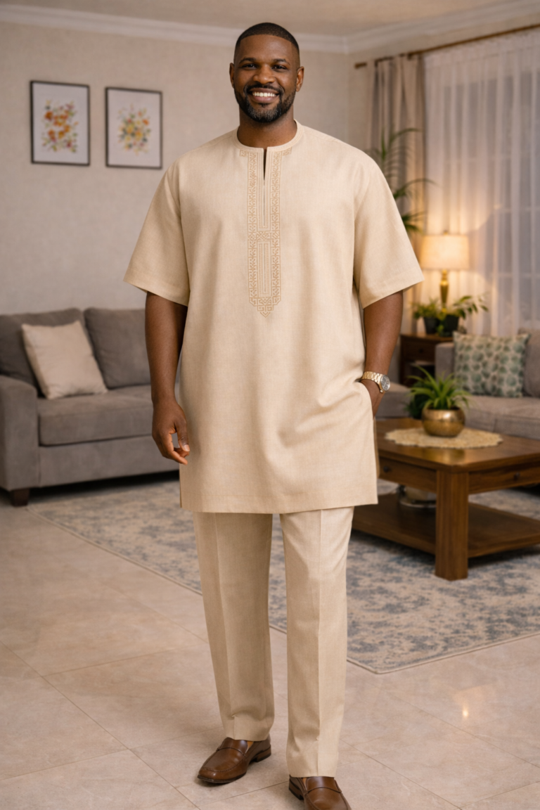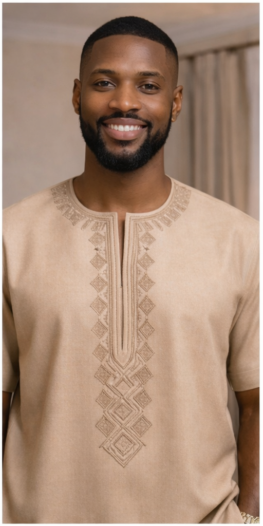 Bring refined elegance to your wardrobe with this light-toned kaftan, beautifully accented by intricate yellow embroidery running vertically down the front. Designed with short sleeves and a tailored chest pocket, the piece combines cultural craftsmanship with modern simplicity. Its lightweight fabric and clean silhouette make it versatile for festive occasions, formal gatherings, or everyday sophistication. The subtle yet striking embroidery detail adds a touch of artistry, ensuring you stand out with understated charm.