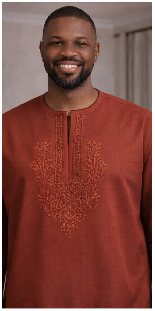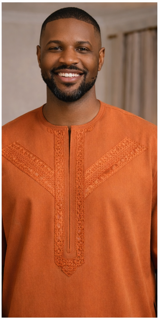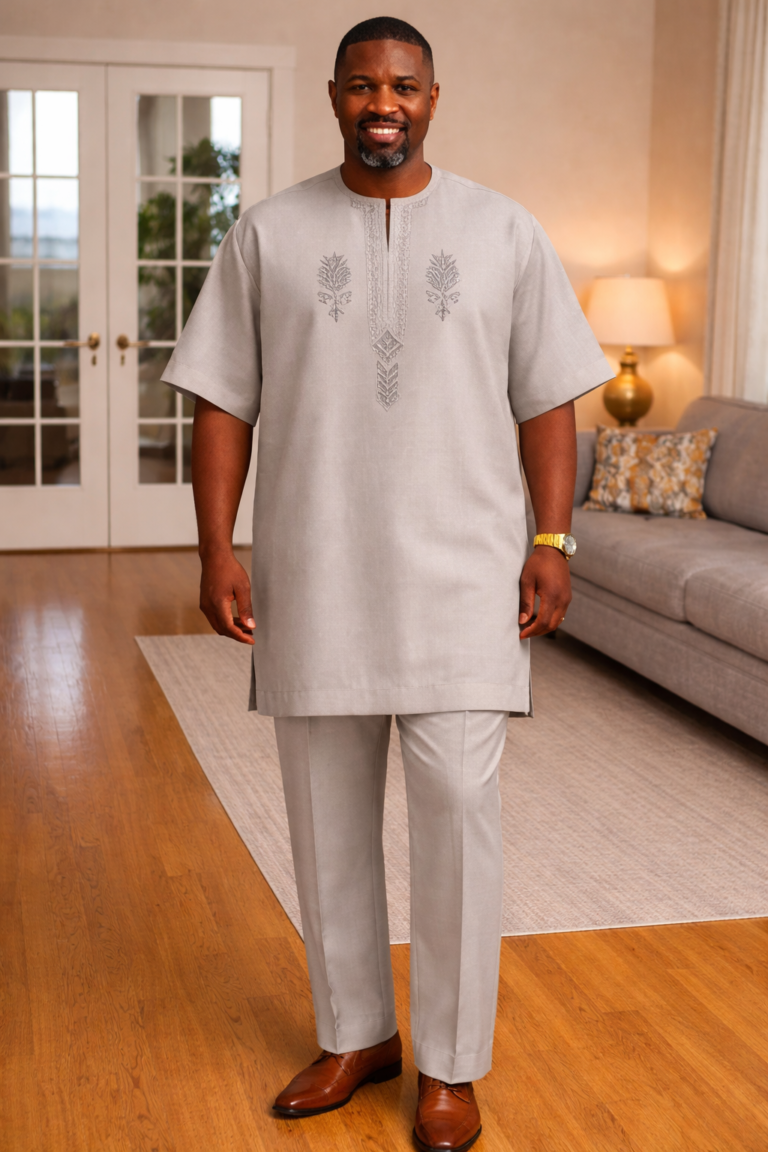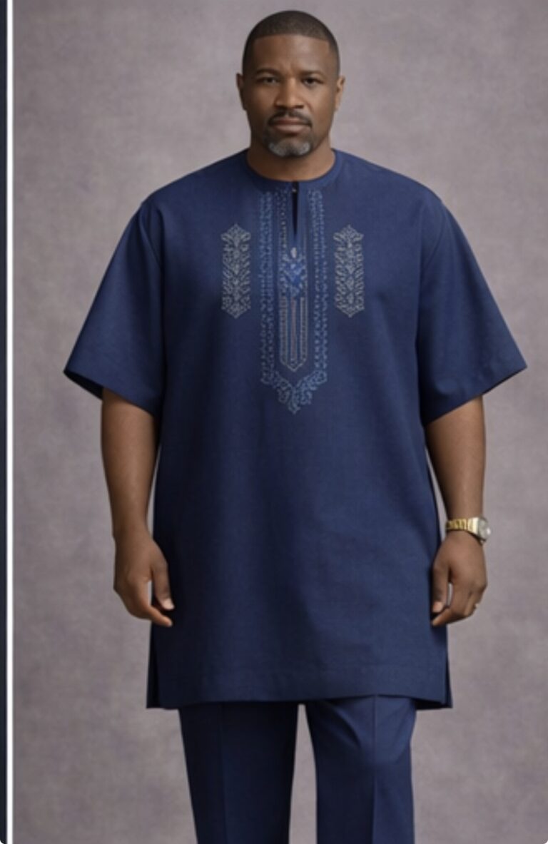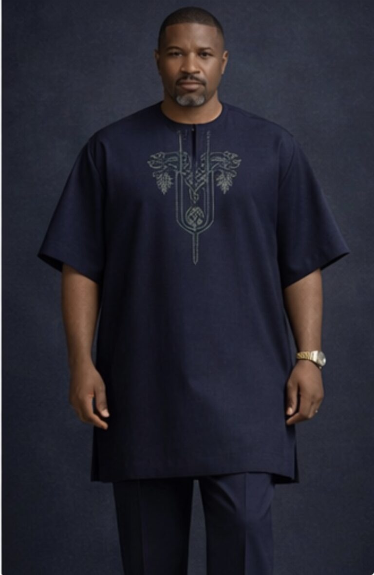 The Cobalt Archive Danshiki gives a softer, more decorative interpretation of the House of Triniks Danshiki silhouette. Its archive panel embroidery adds character without sacrificing clarity, while the premium senator base, clean side slits, and balanced sleeve volume make it a dependable option for luxury daywear, cultural occasions, and elevated social events.