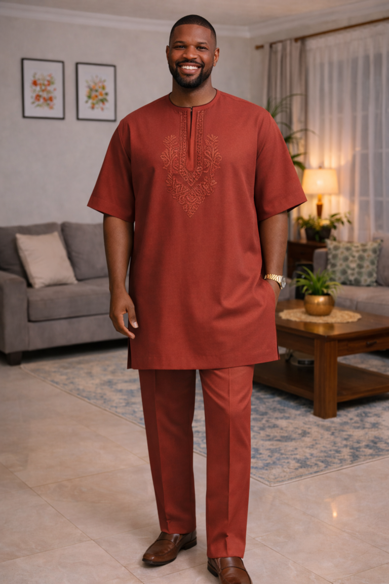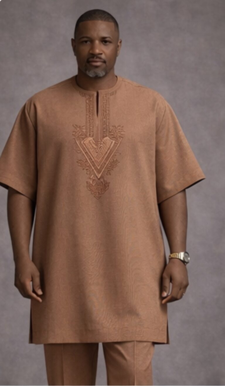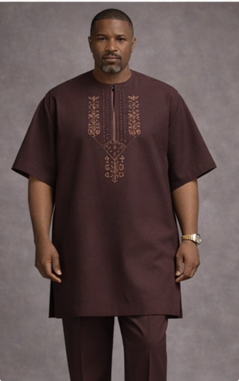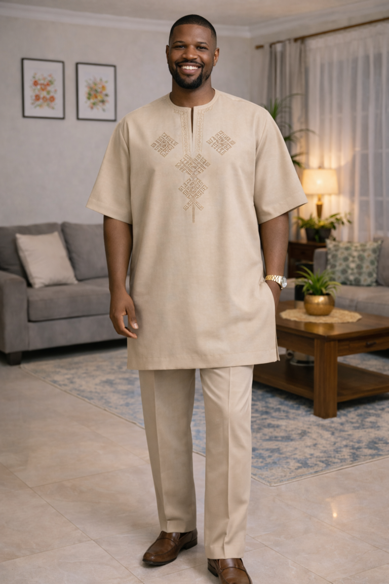 The Cobalt Archive Danshiki gives a softer, more decorative interpretation of the House of Triniks Danshiki silhouette. Its archive panel embroidery adds character without sacrificing clarity, while the premium senator base, clean side slits, and balanced sleeve volume make it a dependable option for luxury daywear, cultural occasions, and elevated social events.
