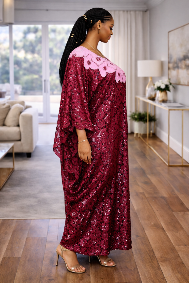 Ezinne Collection: Boubou Kaftan with an Off-shoulder Neckline