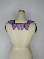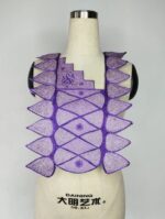 This is a bold and captivating embroidery piece that merges the mystique of the color purple with the strength of geometric design. Resembling a stylized chest plate or exoskeleton, the embroidery features a central lattice of shimmering lavender panels bordered with deep violet outlines. The pointed, scale-like shapes along the edges evoke the image of dragon scales or protective armor, giving it a fierce yet regal appearance.