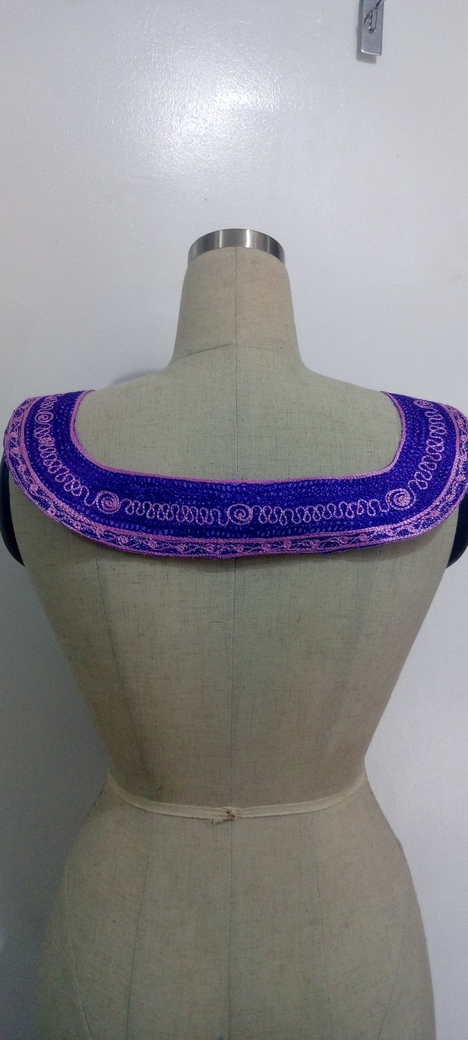Add a touch of timeless elegance to your garments with this beautifully handcrafted blue embroidered neck appliqué, perfect for creating a refined and graceful look. The symmetrical floral and bow-inspired patterns add a touch of regal charm, making it perfect for enhancing kaftans, blouses, or couture dresses