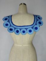 This captivating embroidery piece features a sophisticated blend of rich blue tones arranged in a symmetrical ring pattern. The neckline is densely filled with detailed thread work, creating a textured canvas that seamlessly flows into a striking column of concentric circles. The design evokes a sense of movement and elegance, making it ideal for high-fashion gowns, ceremonial wear, or statement dresses where an elongated, dramatic visual impact is desired.