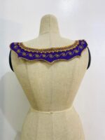 This is a majestic embroidery piece that exudes regal charm and artistic elegance. Set against a rich purple backdrop, the design features flowing golden-yellow vines, floral bursts, and symmetrical motifs that radiate from the centre like a royal emblem.