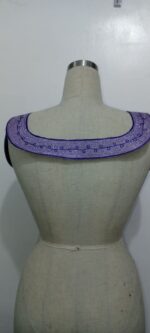 This is a beautifully intricate embroidered chest piece, designed in a rich palette of lavender and deep violet. Crafted with precision, it features a symmetrical arrangement of bold floral motifs connected by elegant vine-like patterns, all outlined with dense satin stitches that add texture and depth.