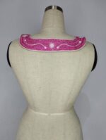 Make a bold fashion statement with this exquisite pink embroidered bodice appliqué. Designed with an intricate swirling pattern, this dazzling piece features a shimmering pink base, enhanced with rich blue embroidery that adds depth and sophistication. The striking contrast and meticulous craftsmanship make it ideal for embellishing kaftans, gowns, and statement pieces. Perfect for those who seek elegance with a touch of drama, this appliqué transforms any outfit into a masterpiece.