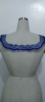 The Ocean Frost Embroidery captures the essence of deep ocean waves kissed by the shimmer of ice. The rich royal blue base evokes the depth and mystery of the sea, while the intricate silver-white stitching swirls gracefully across the fabric like frost forming on cold water or sea foam curling in motion.