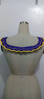 This is a captivating embroidery piece that fuses the opulence of royal purple with the brilliance of golden yellow. The radiant gold outlines and dot details add a glowing contrast against the rich purple background.