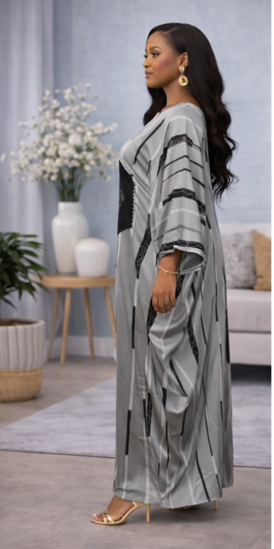 Yimi Collection Boubou Kaftan: Embroidered Splendor with Brilliant Stone Detailing