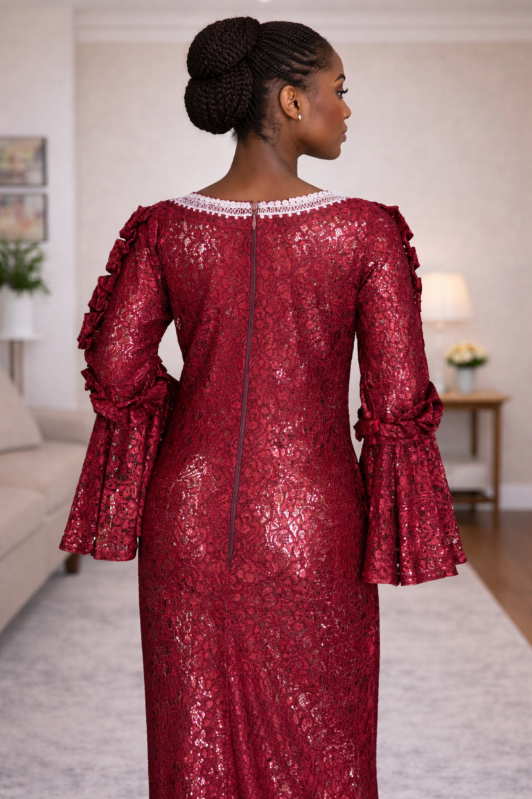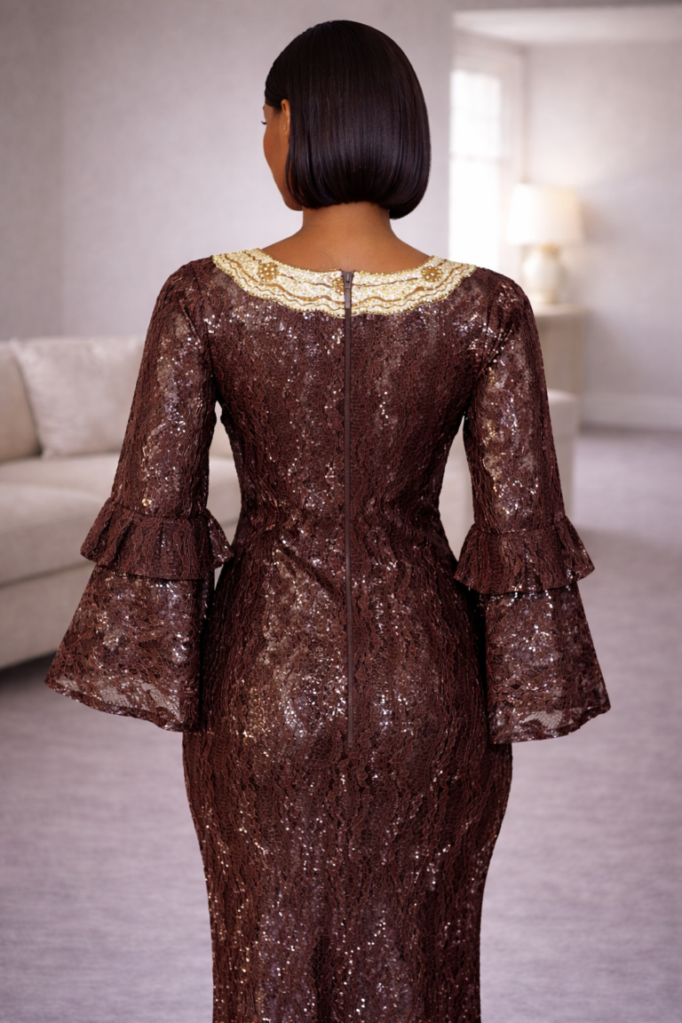 Ezinne Boubou Kaftan: Lace Embellished with a Stylishly Embroidered Neckline