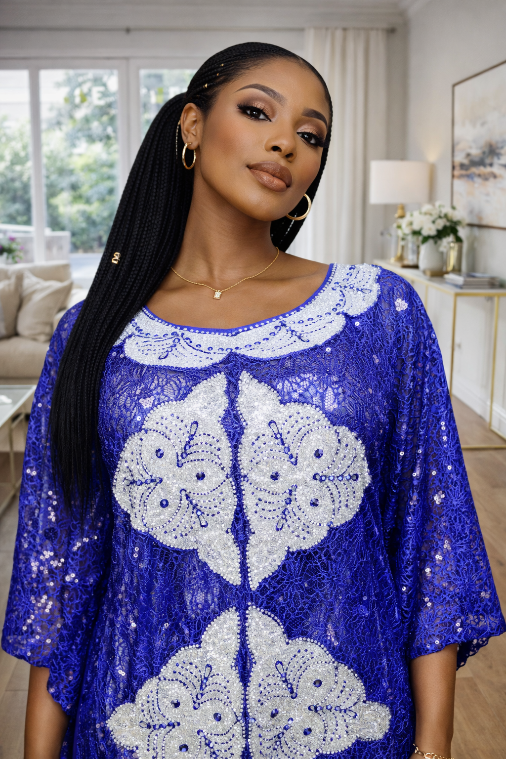 Step into a world of sophistication and luxury with the ADAEZE Collection. Each piece in this exquisite collection is a work of art, meticulously crafted to redefine high-end fashion. Adorned with delicate embroidery patches and shimmering stones, these boubous lace kaftans are a true reflection of refined style and opulence.
