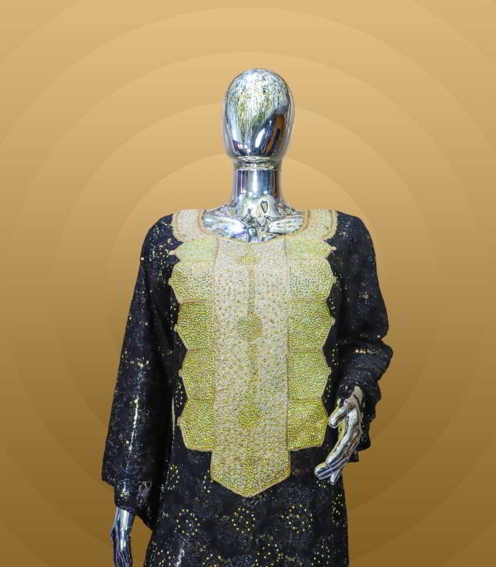 Step into a world of sophistication with the BOLA Collection, a stunning fusion of traditional artistry and modern glamour. Each piece in this collection is meticulously crafted with detailed embroidery, delicate boubous lace, and glistening stones, creating a harmonious blend of textures and embellishments that speak to refined luxury.
