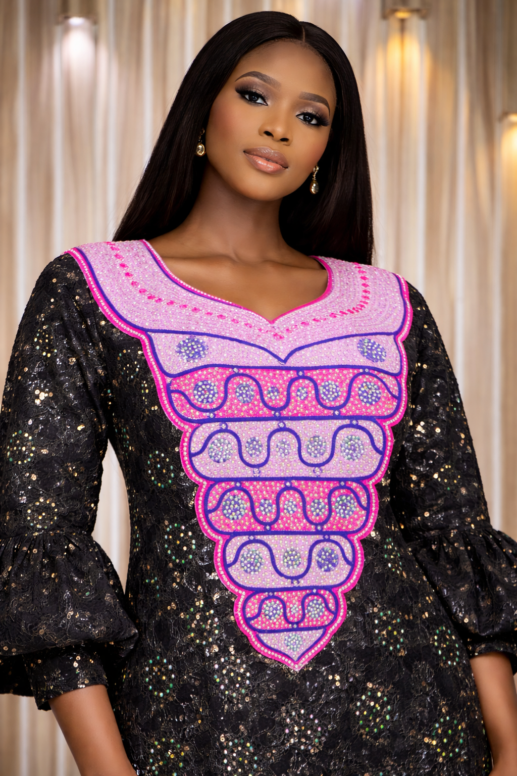 Introducing the luxurious BOLA Collection, a dazzling ensemble featuring intricate embroidery, boubous lace, and sparkling stones. Designed for the fashion-forward individual, this unlined collection radiates elegance and charm. Please note, handwashing is recommended for optimal care.