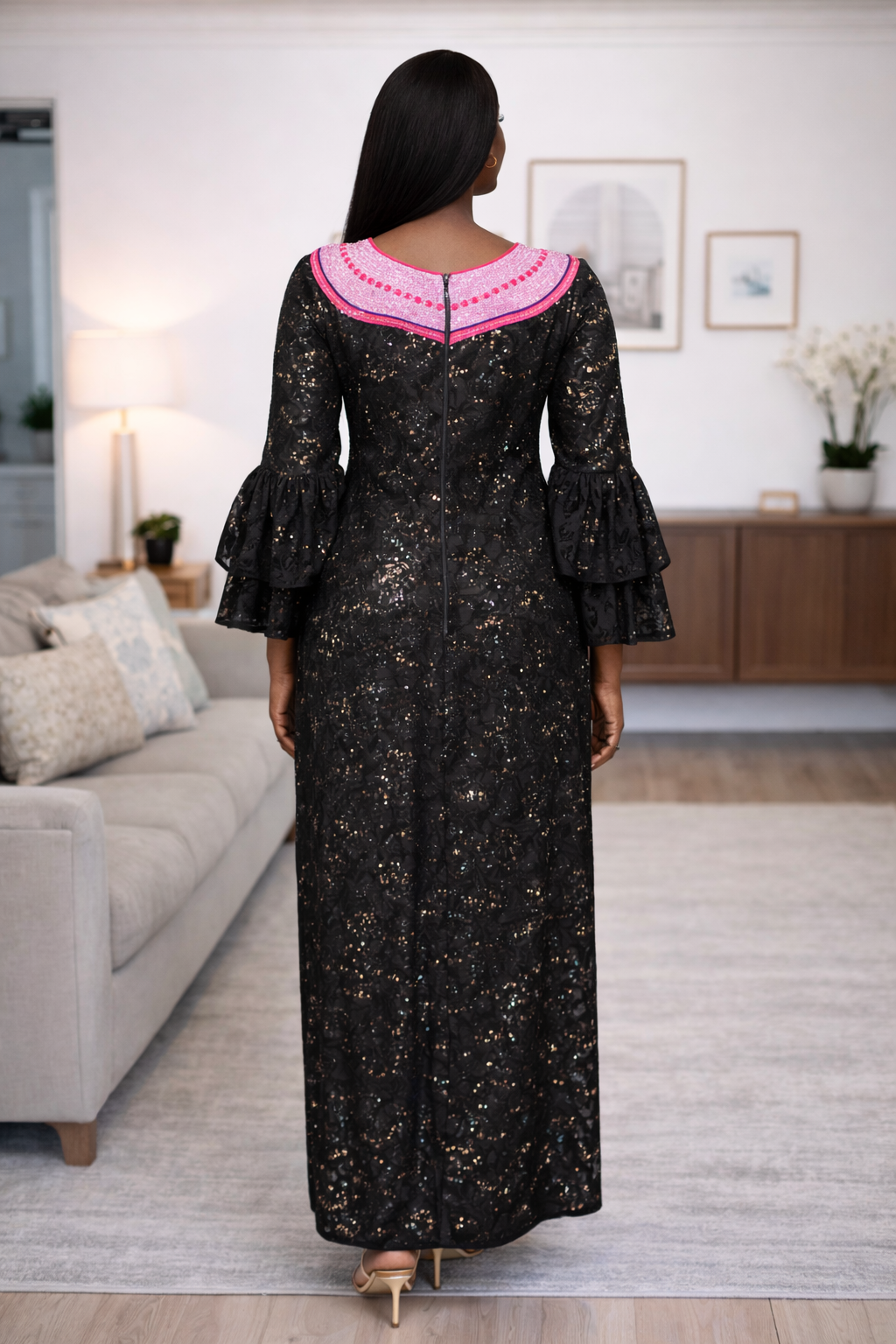 Bola Collection: Boubou Kaftan – Embroidered Elegance with Exquisite Rhinestone Accents