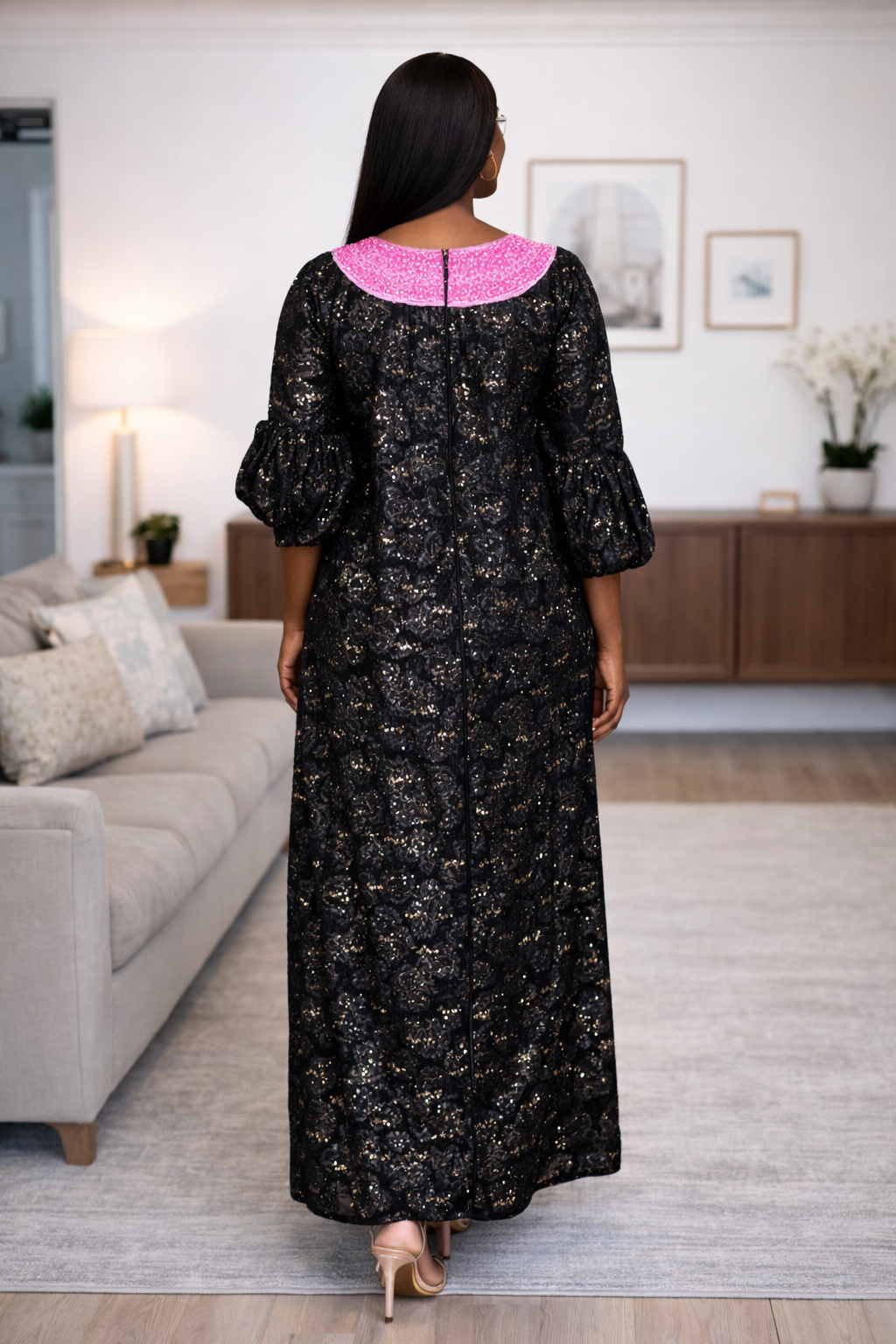 Bola Collection: Boubou Kaftan – Embroidered Elegance with Sparkling Stone Accents