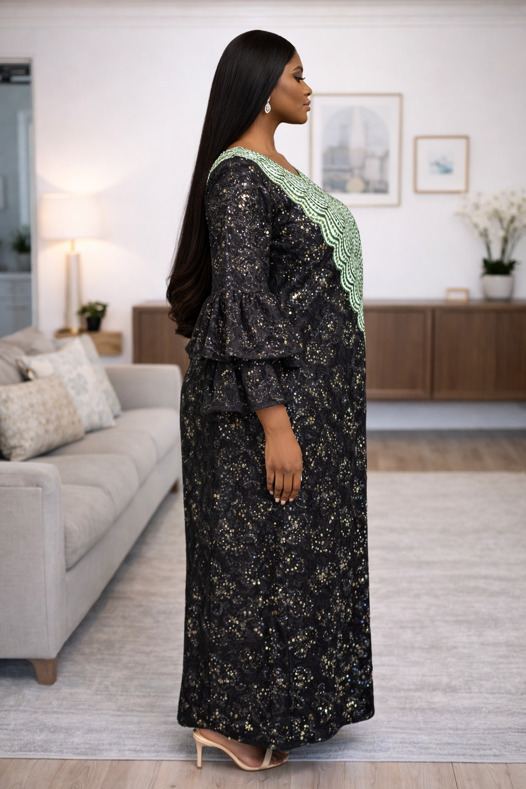 Step into a world of sophistication with the BOLA Collection, a stunning fusion of traditional artistry and modern glamour. Each piece in this collection is meticulously crafted with detailed embroidery, delicate boubous lace, and glistening stones, creating a harmonious blend of textures and embellishments that speak to refined luxury.