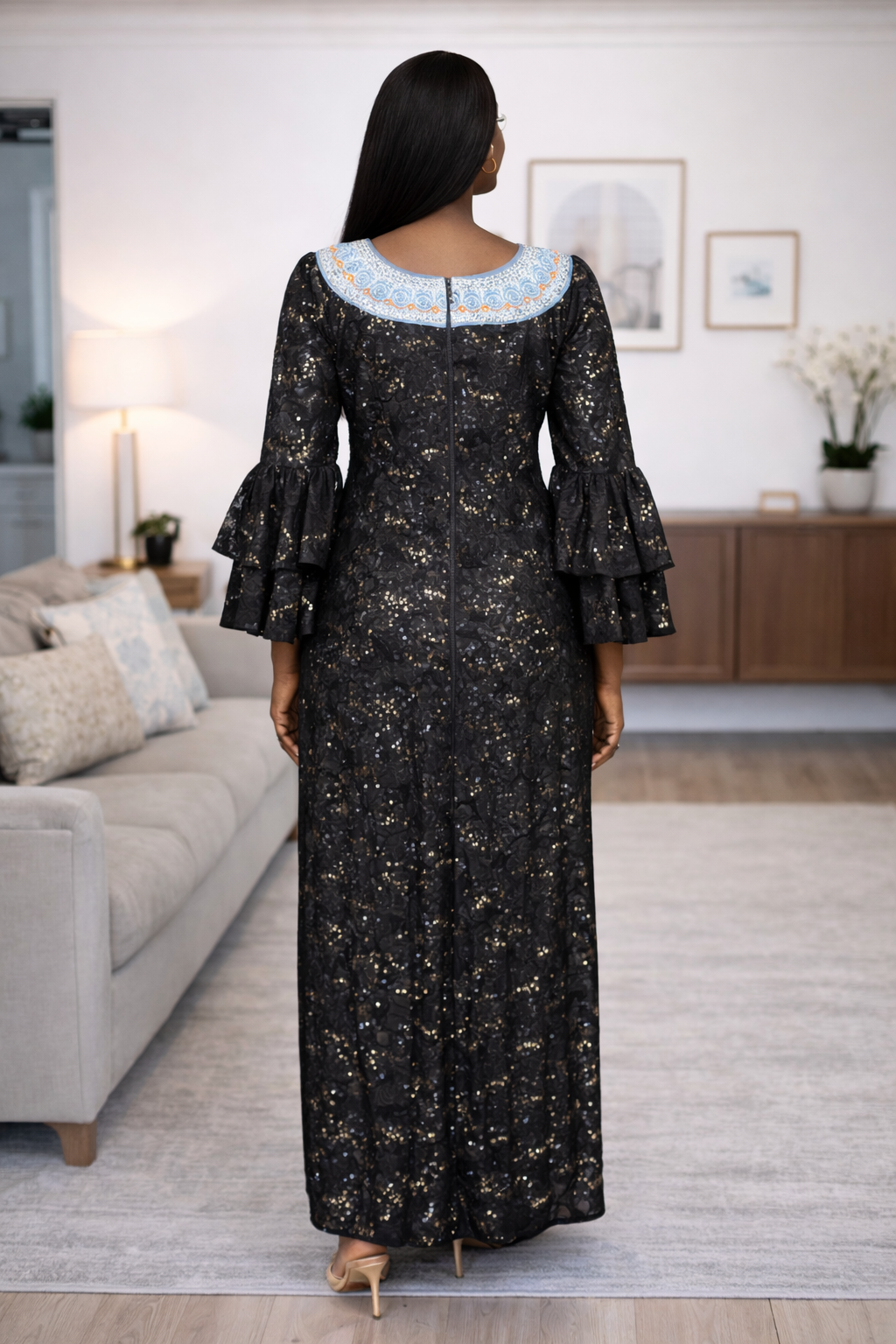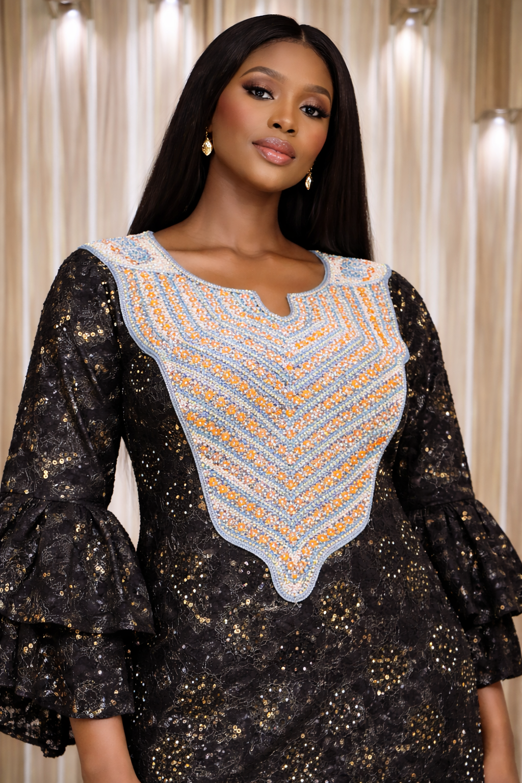 Bola Collection: Boubou Kaftan - Embroidered Luxe with Exquisite Crystal Detailing