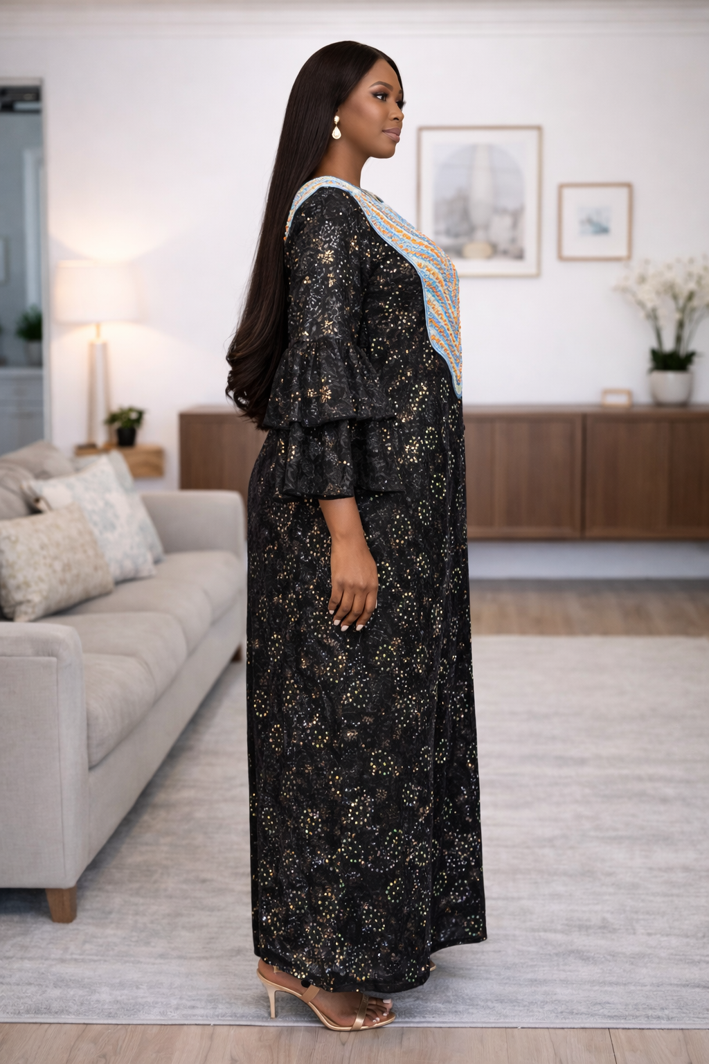 Bola Collection: Boubou Kaftan – Embroidered Radiance with Shining Stone Accents