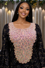Step into a world of sophistication with the BOLA Collection, a stunning fusion of traditional artistry and modern glamour. Each piece in this collection is meticulously crafted with detailed embroidery, delicate boubous lace, and glistening stones, creating a harmonious blend of textures and embellishments that speak to refined luxury.
