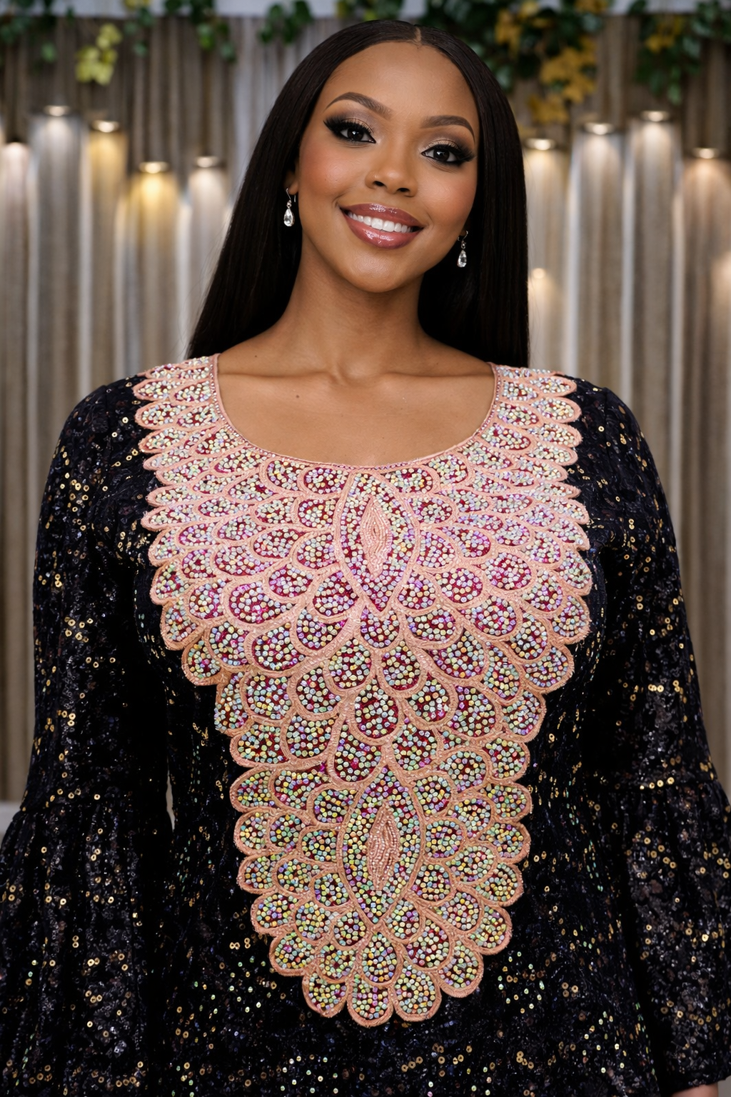 Bola Collection: Boubou Kaftan - Embroidered Glamour with Lustrous Stone Embellishments