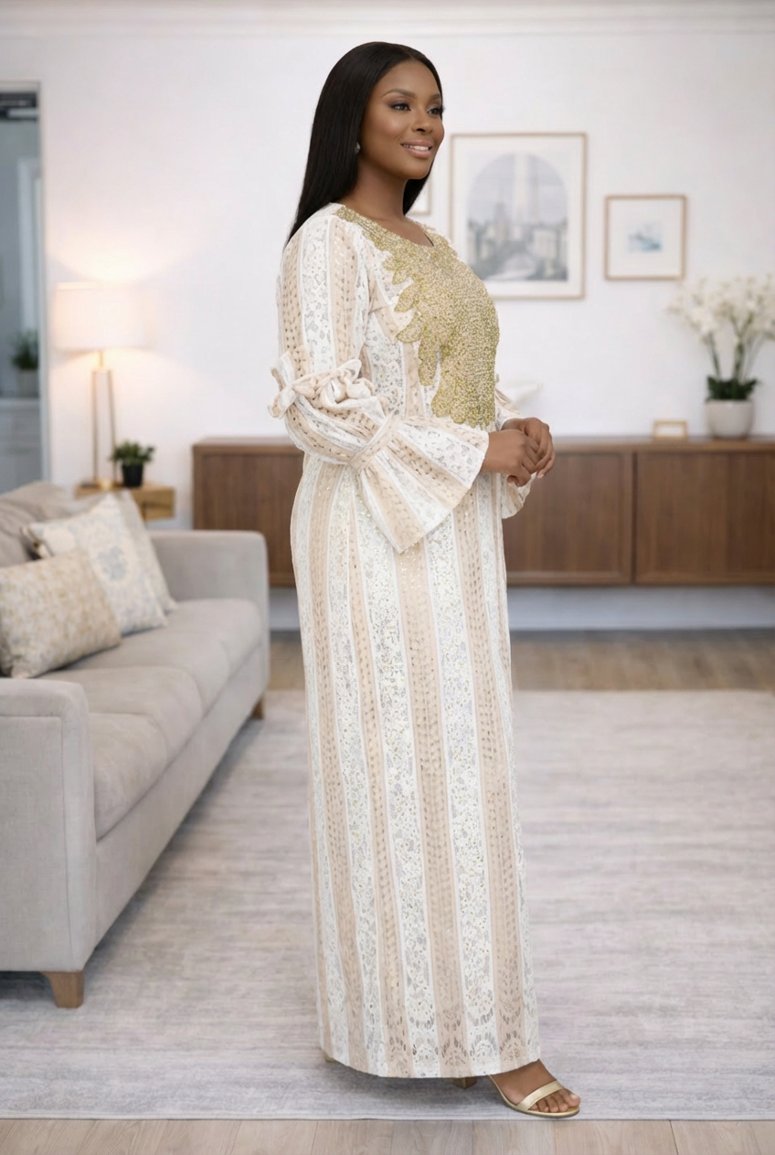 Blending traditional craftsmanship with contemporary design, the BOLU Collection offers a selection of boubous and kaftans that epitomize luxury and grace. The rich embroidery tells a story of culture and heritage, while the delicate lace adds a touch of femininity, creating a harmonious fusion of tradition and modernity.