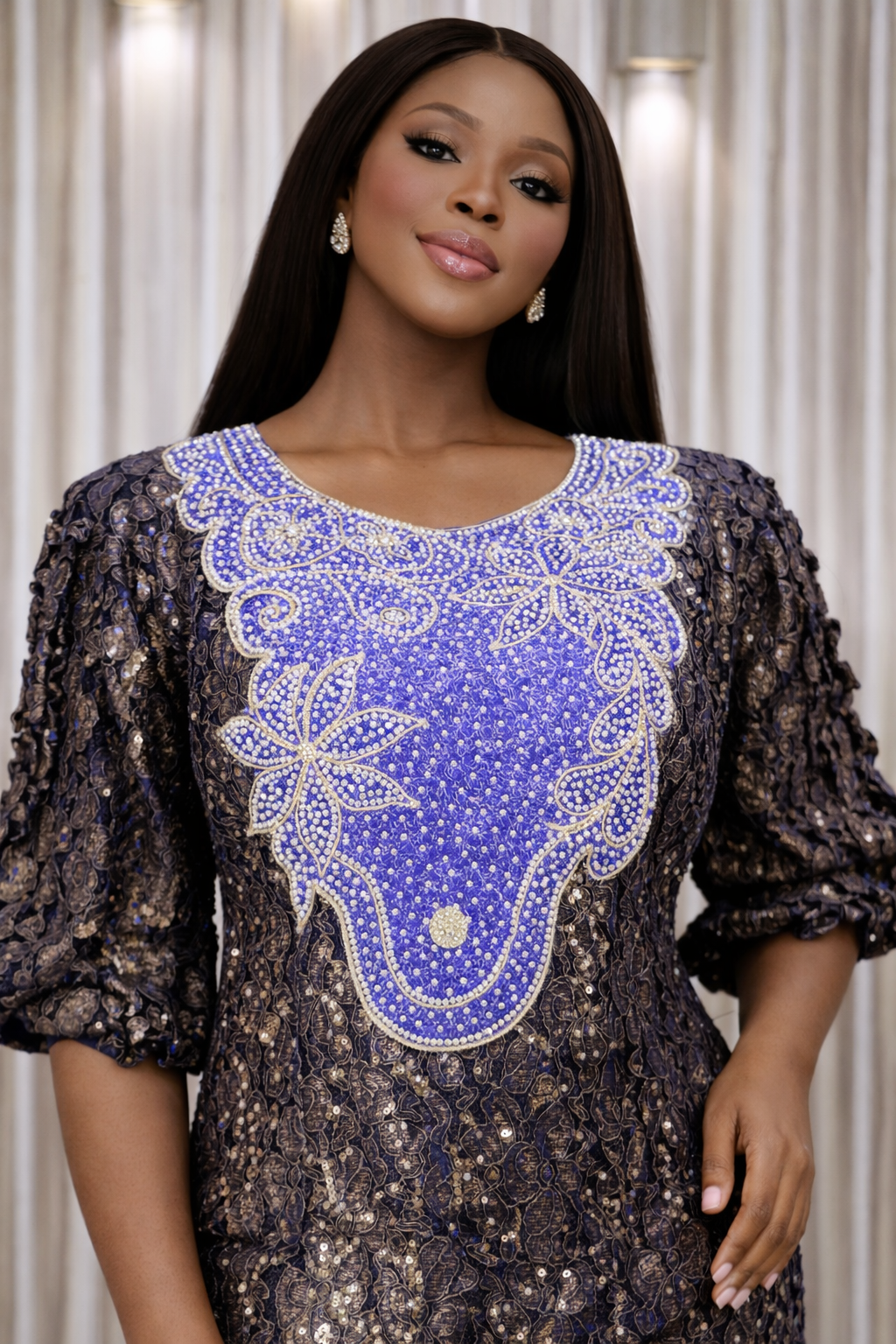 Blending traditional craftsmanship with contemporary design, the BOLU Collection offers a selection of boubous and kaftans that epitomize luxury and grace. The rich embroidery tells a story of culture and heritage, while the delicate lace adds a touch of femininity, creating a harmonious fusion of tradition and modernity.