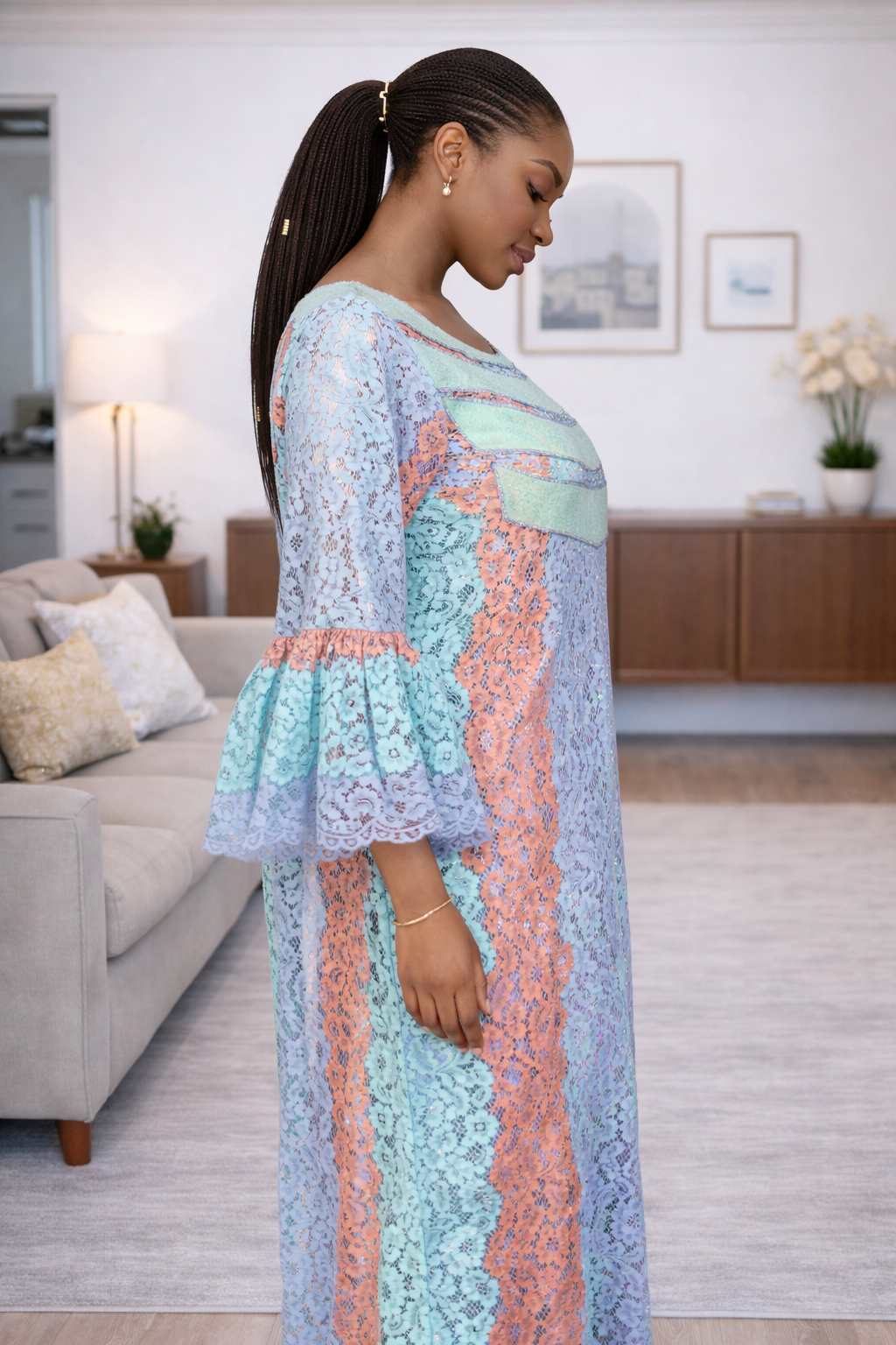 One of the standout features of the DANNY Collection Lace Boubou Kaftan is its practicality. Unlike many other delicate garments, this kaftan can be easily washed in a standard washing machine, saving you time and effort on dry cleaning. The high-quality fabric used in its construction ensures that it maintains its shape and beauty even after multiple washes.