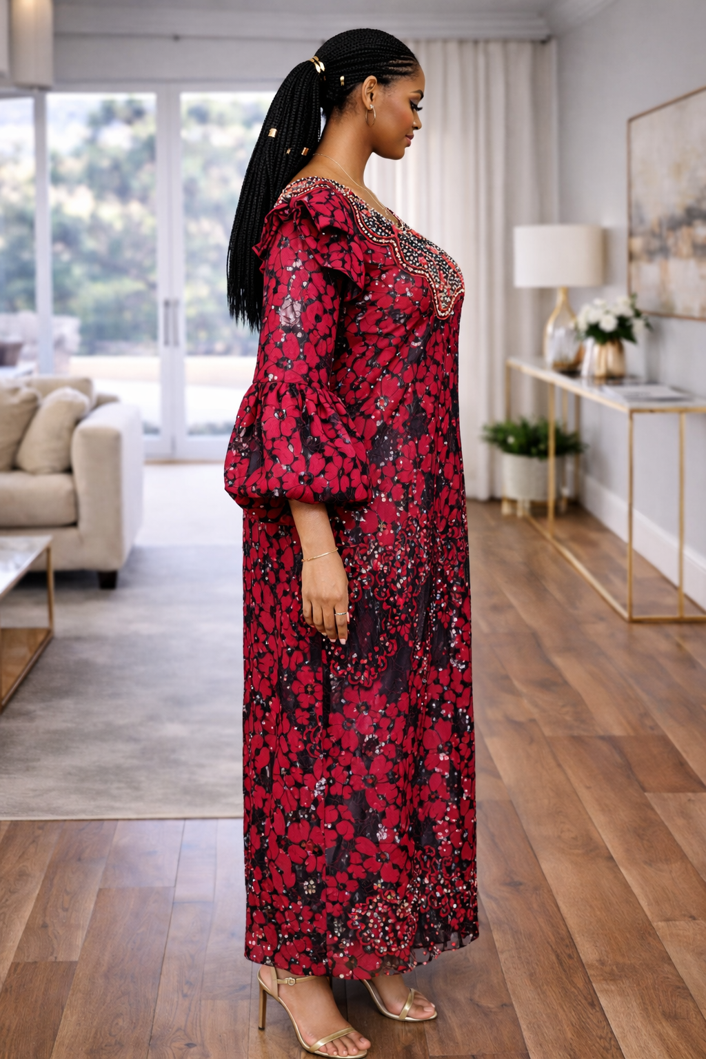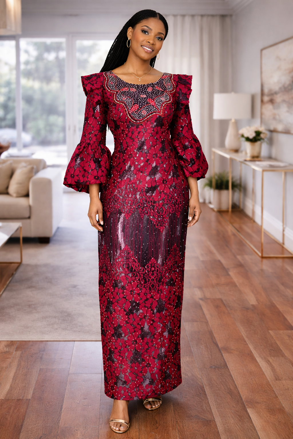 Immerse yourself in the world of sophistication with the EKENE Collection, a captivating ensemble that seamlessly blends traditional craftsmanship with contemporary allure. Each piece in this collection is meticulously embellished with detailed embroidery, delicate boubous lace, and sparkling stones, creating a harmonious symphony of textures and embellishments that embody refined luxury.