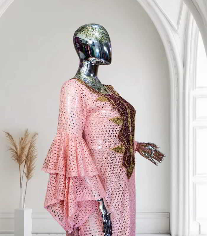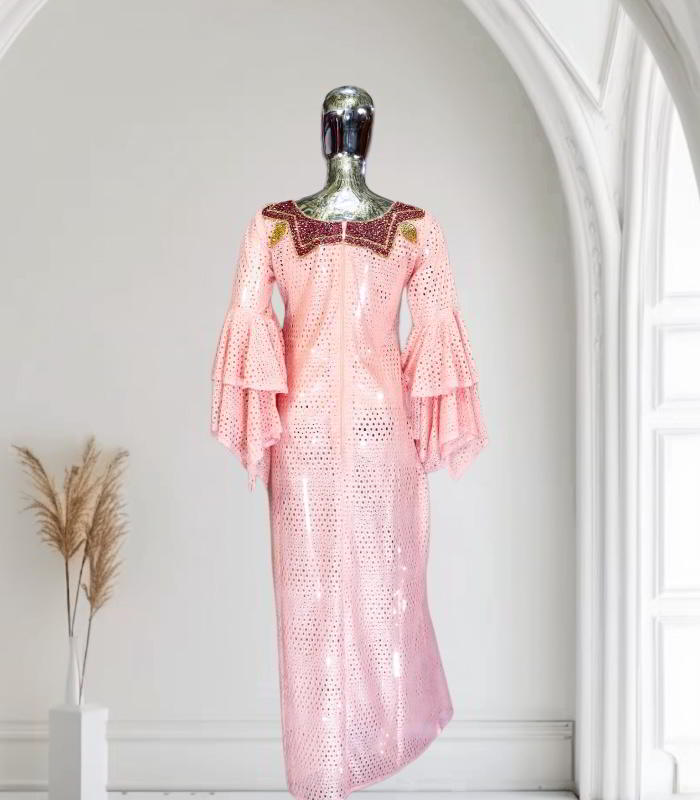 Eri Collection: Sunset Sparkle Boubou Kaftan – Intricate Embroidery and Dazzling Stonework