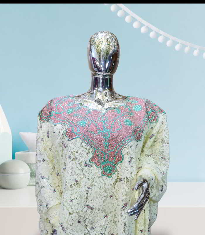 Elevate your style with the exquisite KIKI Collection, featuring stunning lace abayas kaftans, garnished with intricate embroidery and well-placed stones. Designed for the discerning individual who appreciates fine craftsmanship and unique style, each piece in the KIKI Collection is meticulously crafted to make a statement. Please note, these luxurious garments are unlined and require delicate care, avoiding washing machines to preserve their beauty.