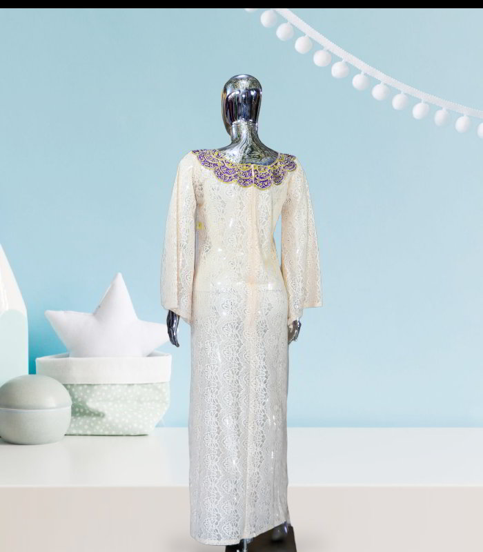 Moronke Collection: Radiant Reverie Kaftan – Embroidered Splendor with Gleaming Stones