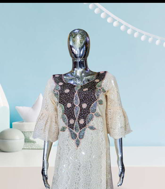 Immerse yourself in the allure of the MORONKE Collection, a mesmerizing assortment of attire that seamlessly weaves together traditional artistry and modern charm. Each piece in this collection is meticulously adorned with detailed embroidery, delicate boubous lace, and radiant stones, creating a harmonious tapestry of textures and embellishments that embody exquisite luxury.