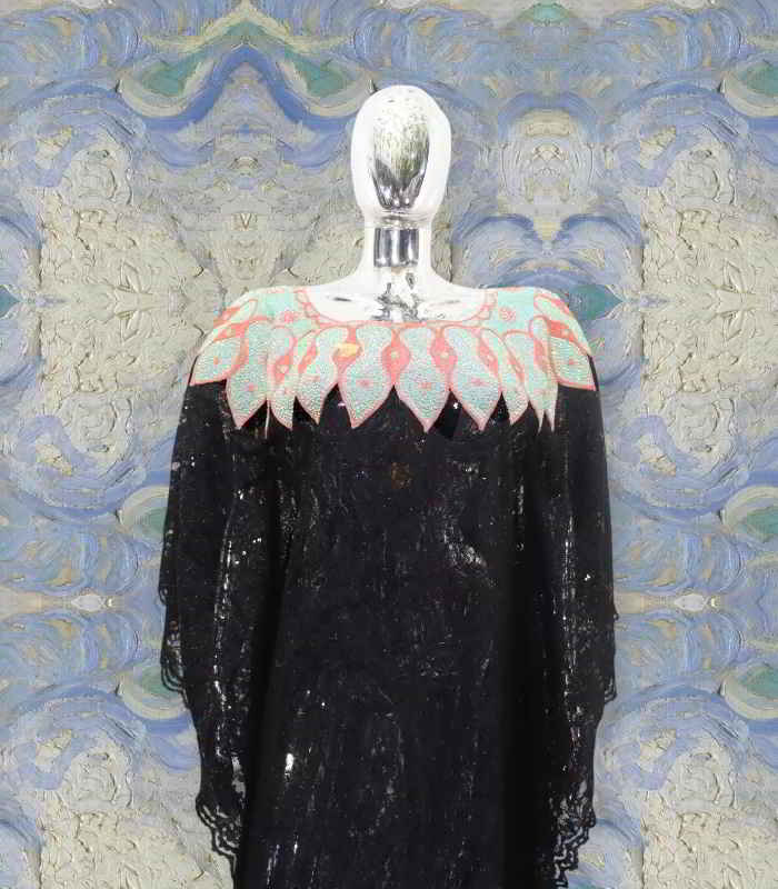 Unlined for a breezy and luxurious feel, our kaftan drapes effortlessly, flattering every curve and exuding an air of sophistication that is unmatched. The intricate details and embellishments add a touch of glamour, making this piece a true showstopper at any event or occasion.