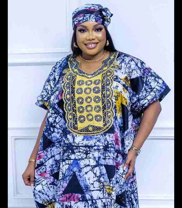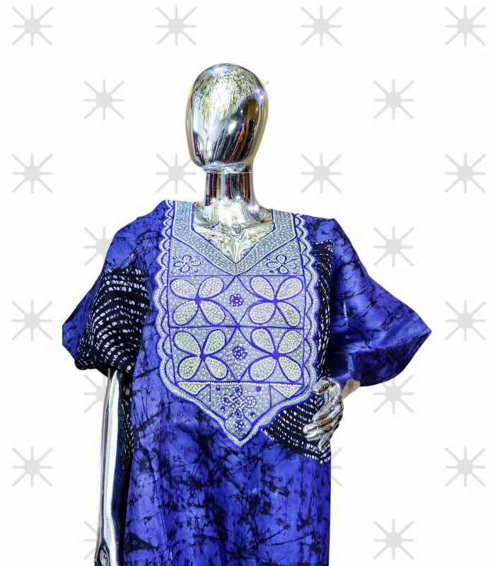 Discover the EWA Collection, a line of meticulously crafted boubous kaftans, and adire garments adorned with intricate embroidery and stunning stone embellishments. Designed for those with a discerning taste for elegance and quality. To maintain the beauty of these exquisite pieces, please handle them with care and refrain from washing them in a washing machine.