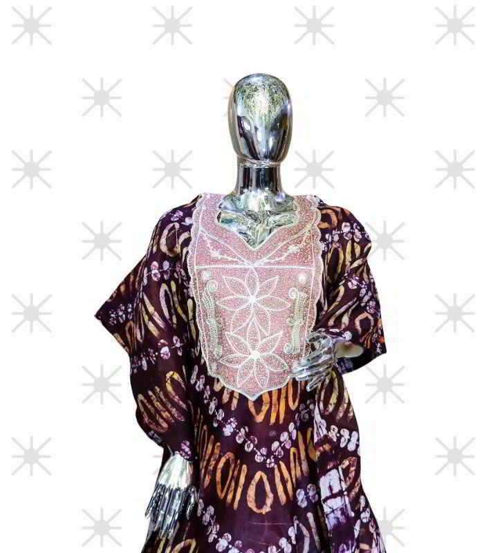 Discover the EWA Collection, a line of meticulously crafted boubous kaftans, and adire garments adorned with intricate embroidery and stunning stone embellishments. Designed for those with a discerning taste for elegance and quality. To maintain the beauty of these exquisite pieces, please handle them with care and refrain from washing them in a washing machine.