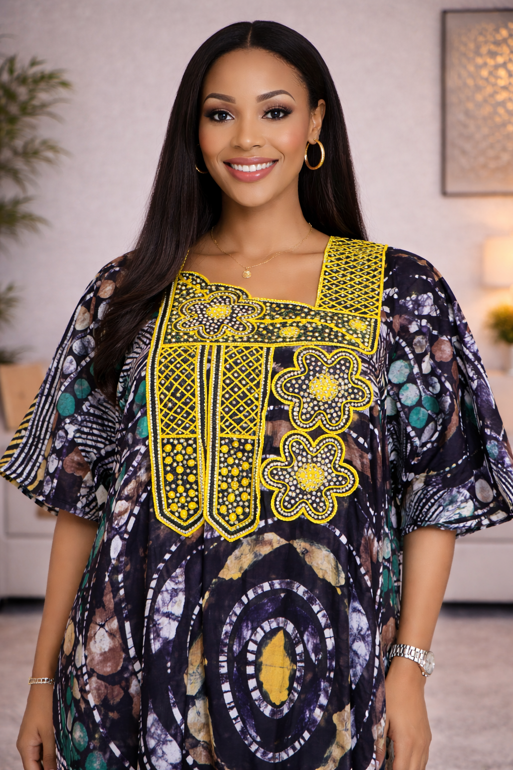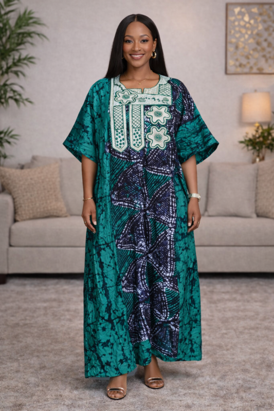 Discover the EWA Collection, a line of meticulously crafted boubous kaftans, and adire garments adorned with intricate embroidery and stunning stone embellishments. Designed for those with a discerning taste for elegance and quality. To maintain the beauty of these exquisite pieces, please handle them with care and refrain from washing them in a washing machine.