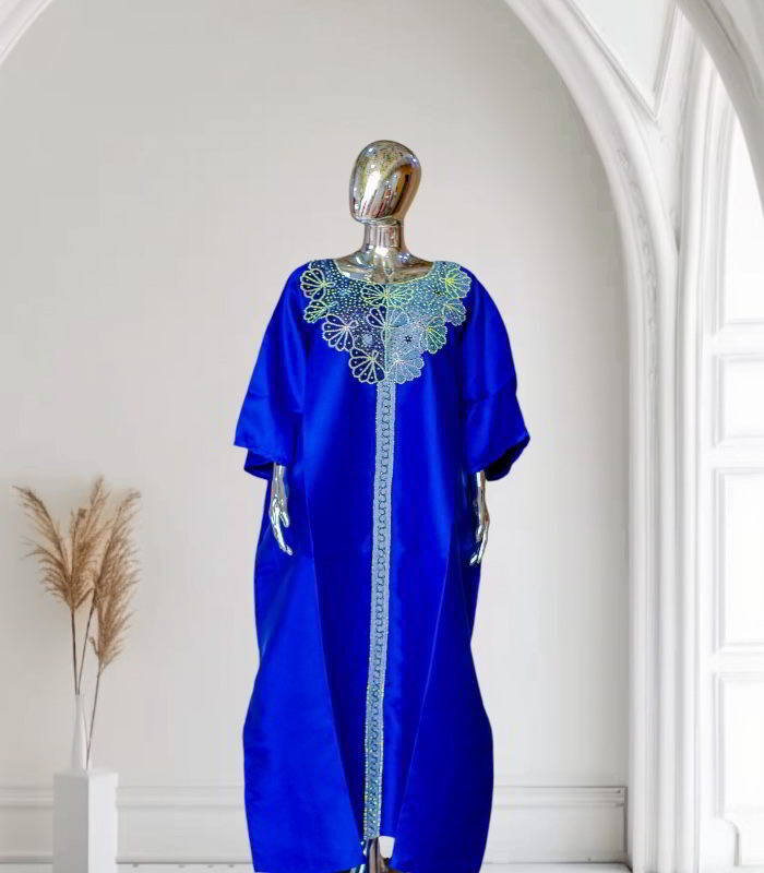 Introducing the exquisite GBEMI Collection, where luxury meets artistry. Our handcrafted Mikado Boubous Kaftans are delicately garnished with intricate embroidery and sparkling stones, designed for the discerning individuals who appreciate elegance and style. Each piece is a masterpiece that exudes sophistication and glamour. Please note that these exclusive garments should not be washed in a washing machine, preserving their impeccable quality for years to come.