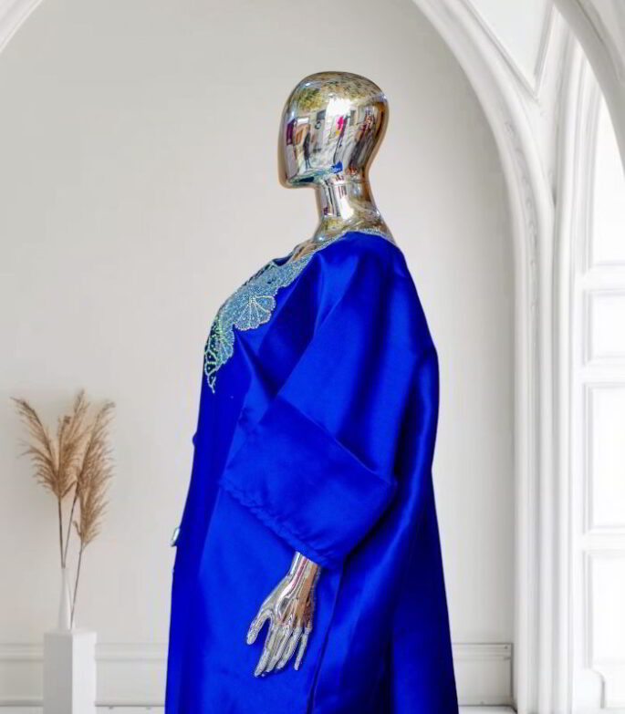 Welcome to the world of GBEMI Collection, where opulence and craftsmanship converge to create a line of unparalleled luxury garments. Our signature Mikado Boubous Kaftans are adorned with exquisite embroidery and meticulously stoned to perfection, ensuring that each piece is a true work of art.