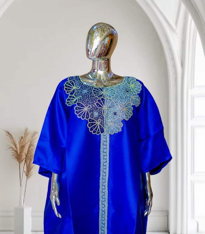 Introducing the exquisite GBEMI Collection, where luxury meets artistry. Our handcrafted Mikado Boubous Kaftans are delicately garnished with intricate embroidery and sparkling stones, designed for the discerning individuals who appreciate elegance and style. Each piece is a masterpiece that exudes sophistication and glamour. Please note that these exclusive garments should not be washed in a washing machine, preserving their impeccable quality for years to come.