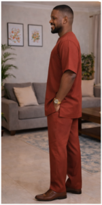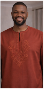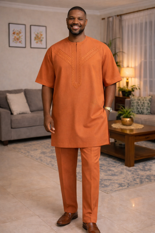 The Ember Laurel Danshiki gives a softer, more decorative interpretation of the House of Triniks Danshiki silhouette. Its laurel crest composition adds character without sacrificing clarity, while the premium senator base, clean side slits, and balanced sleeve volume make it a dependable option for luxury daywear, cultural occasions, and elevated social events.