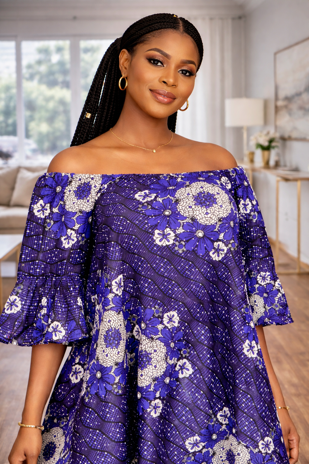 Elevate your wardrobe with the EBUN Collection Off-Shoulder Ankara Dress and experience the magic of African fashion at its finest. Make a bold fashion statement and exude confidence and elegance with every step you take in this stunning piece.
